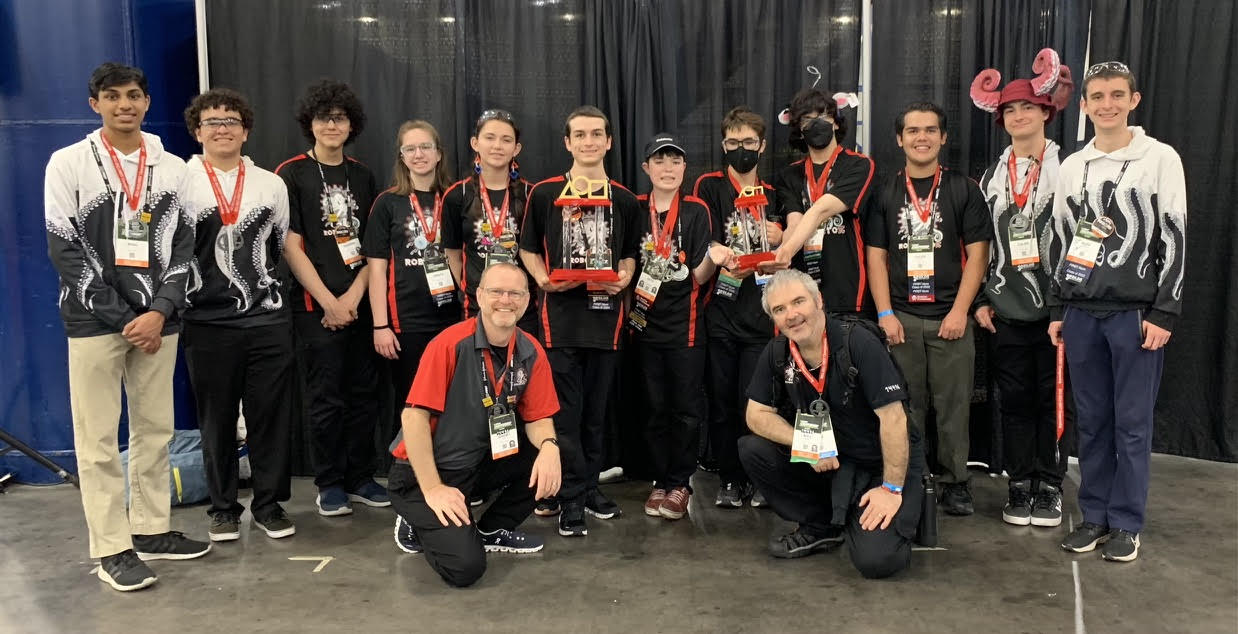 Classical Academy High School (CAHS)students Nicholas Usher, Seth Peace, Caleb Winter, Grace Mullen, and their robotics team, RoboctoPI, recently competed in and won 3rd place at the FIRST Tech Challenge World Championship robotics tournament in Houston, Texas! There are over 7,000 teams worldwide who compete to be considered for this competition. The top 192 teams from 50 states and 30 countries earned a spot to compete at this World Championship in April. Team RoboctoPI reached the Final Four by winning their Division and brought home the prestigious Control Award given to the team that demonstrates the best use of sensors and software to increase the robot’s performance on the field. Congratulations on this prestigious accomplishment!